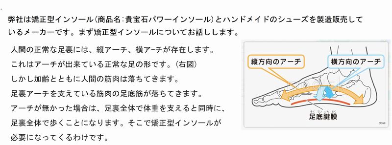 そして貴宝石パワーインソールは7サイズ展開なので日本人の足のサイズにほとんどの方に合います。日本の職人が一足ずつ作るハンドメイドのインソールです。日本人の足の型に合わせた7サイズというインソールの大きさがあれば、99.9%の人に合うわけです。歩行時に足裏を支え姿勢を正しく安定させ、体のバランスをサポートします。