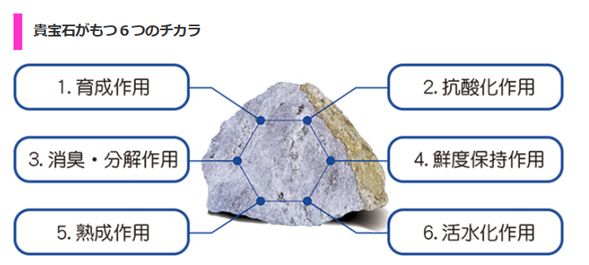 機能性素材としての「温熱力」と「還元力」の高さと「安全性」を兼ね備えています。まさに大自然が生み出した「貴(とうと)い宝の石」として、注目されている天然鉱石です。