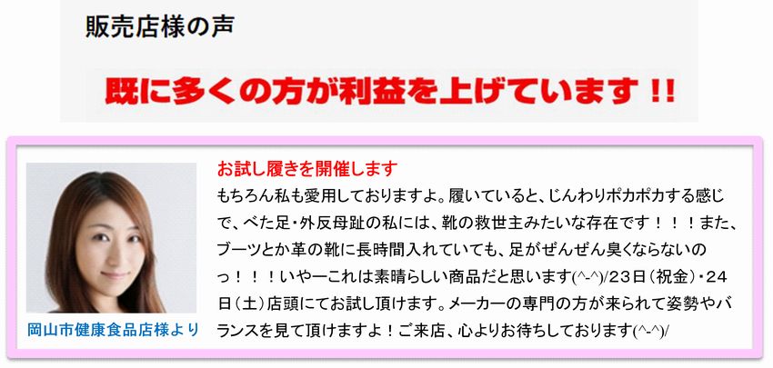 インソール製造メーカーの展示会販売と体験フェア、各種販売